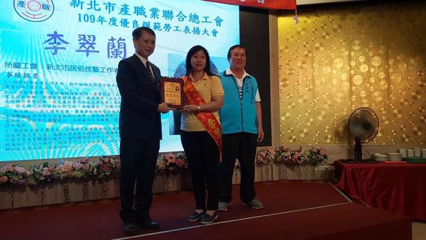 恭賀本會會員代表李翠蘭小姐榮獲109年度新北市政府暨新北市產職業聯合總工會兩項模範勞工。